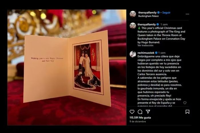 De hecho, desde la cuenta de Instagram de la familia real, compartieron la tarjeta navideña oficial en la que puede verse una foto del Rey junto a su actual esposa, la Reina Camila, en el Salón del Trono del Palacio, tomada por el fotógrafo Hugo Burnand el día de la coronación. “Les deseamos una muy feliz Navidad y Año Nuevo”, dice el texto en inglés que acompaña la postal