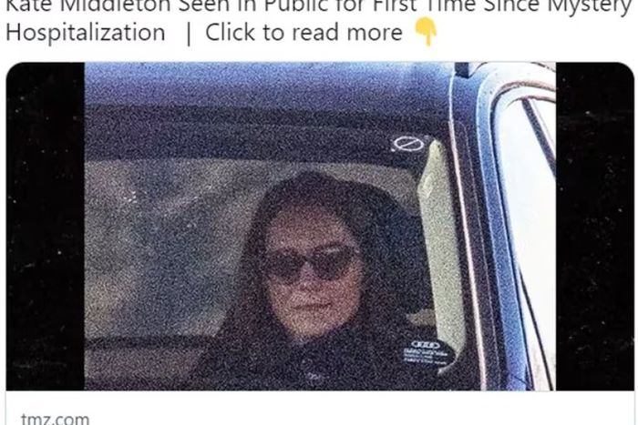 Kate Middleton por fin ha aparecido públicamente. No lo ha hecho en ningún acto público, ni nada similar, sino que ha sido fotografiada por los paparazzi mientras viajaba como copiloto en un vehículo conducido por su madre, Carole. La imagen ha sido difundida por el medio TMZ, que añade que la instantánea fue tomada este lunes, 4 de marzo, a las nueve de la mañana en los alrededores del castillo de Windsor, en cuyos terrenos está Adelaide Cottage, donde vive junto al príncipe Guillermo y sus tres hijos, George, Charlotte y Louis.