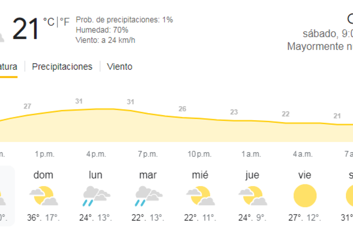 El Servicio Meteorológico Nacional anticipa para este sábado una temperatura que oscilará entre 20 y 32º, con un cielo parcialmente nublado.