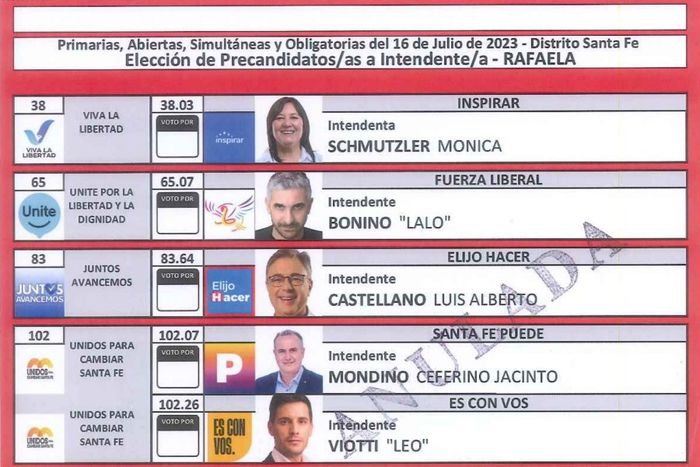 La boleta para Intendente de Rafaela tiene a 5 precandidatos en el siguiente orden: