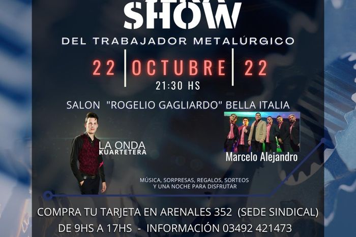 Se realizará la gran cena del Trabajador Metalúrgico en Bella Italia: ¿qué shows habrá??