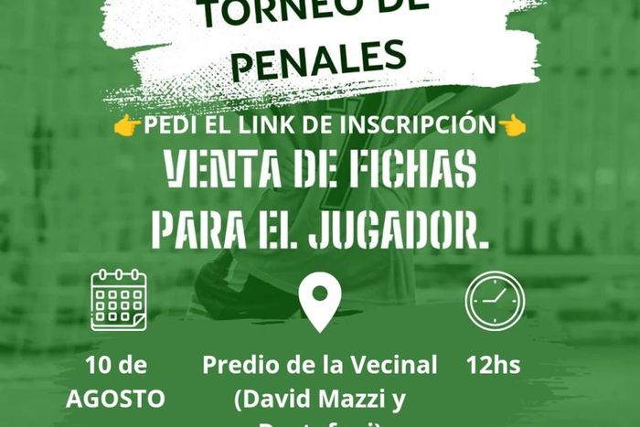 Para tal fin, el barrio ha organizado el primer campeonato de penales, que se llevará a cabo este sábado 10 de agosto al mediodía. La inscripción tiene un costo de 2.000 pesos, y el 80% de lo recaudado se destinará como premio al ganador, tanto en la categoría masculina como femenina.