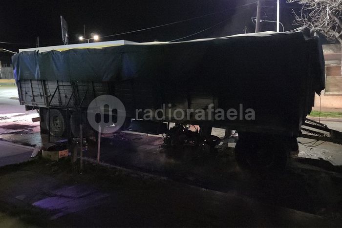 Como consecuencia, terminó impactando de lleno contra el vehículo de gran porte y quedó con la moto debajo del acoplado. El vehículo fue arrastrado por varios metros hasta que el camionero pudo detenerse. En ese momento, la moto se prendió fuego y todo demandó urgente intervención de los bomberos.