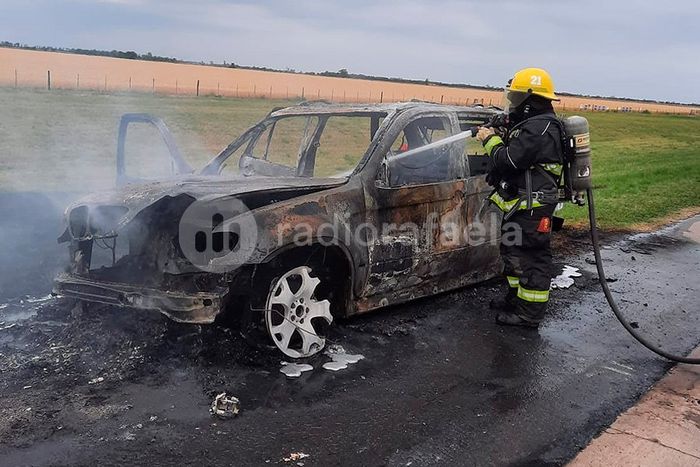 Una vez controlado el incendio, los Bomberos comenzaron la vuelta hacia el cuartel, hasta que en cierto momento fueron anoticiados un incendio vehicular sobre la Autovía N°19, cerca del km 110.