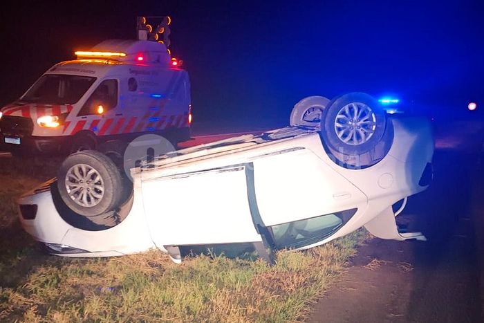 Según relatos de algunos testigos, el Chevrolet Prisma blanco transitaba en dirección Sur-Norte cuando, por razones que aún no han sido determinadas, perdió el control y volcó.