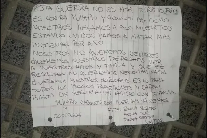 “Nosotros no queremos celulares, queremos nuestros derechos ver a nuestros hijos y familia y se respeten. No queremos negociar nada, queremos nuestros derechos. Esto para todos los presos, pabellones y cárcel”, agregaron, en relación a que Pullaro incrementó en su gestión el control en los penales.